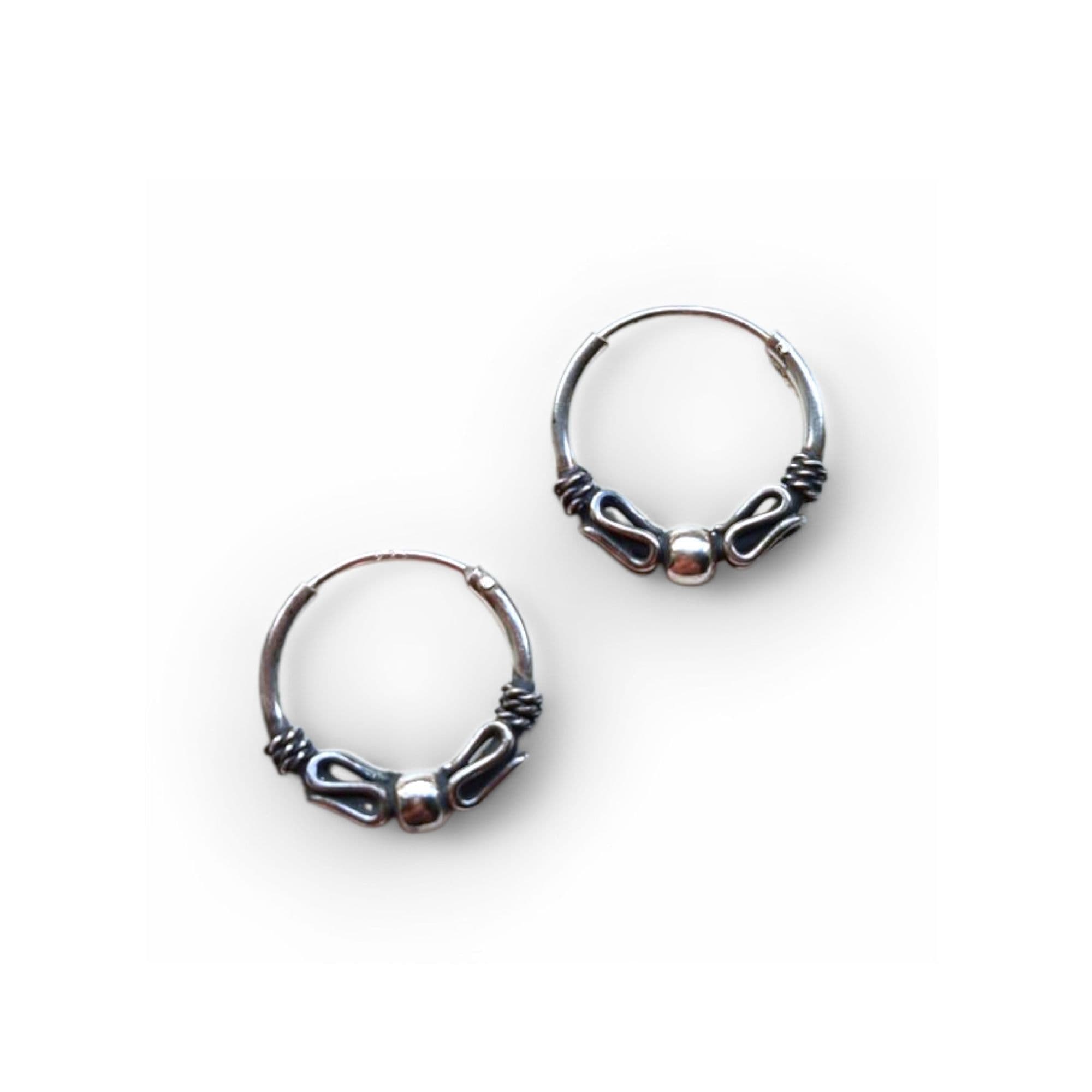 Add a tribal vibe to your outfit with these Sterling silver hoops. They are small enough to be comfy for everyday wear, but also to be noticed for the enchanting patterns.