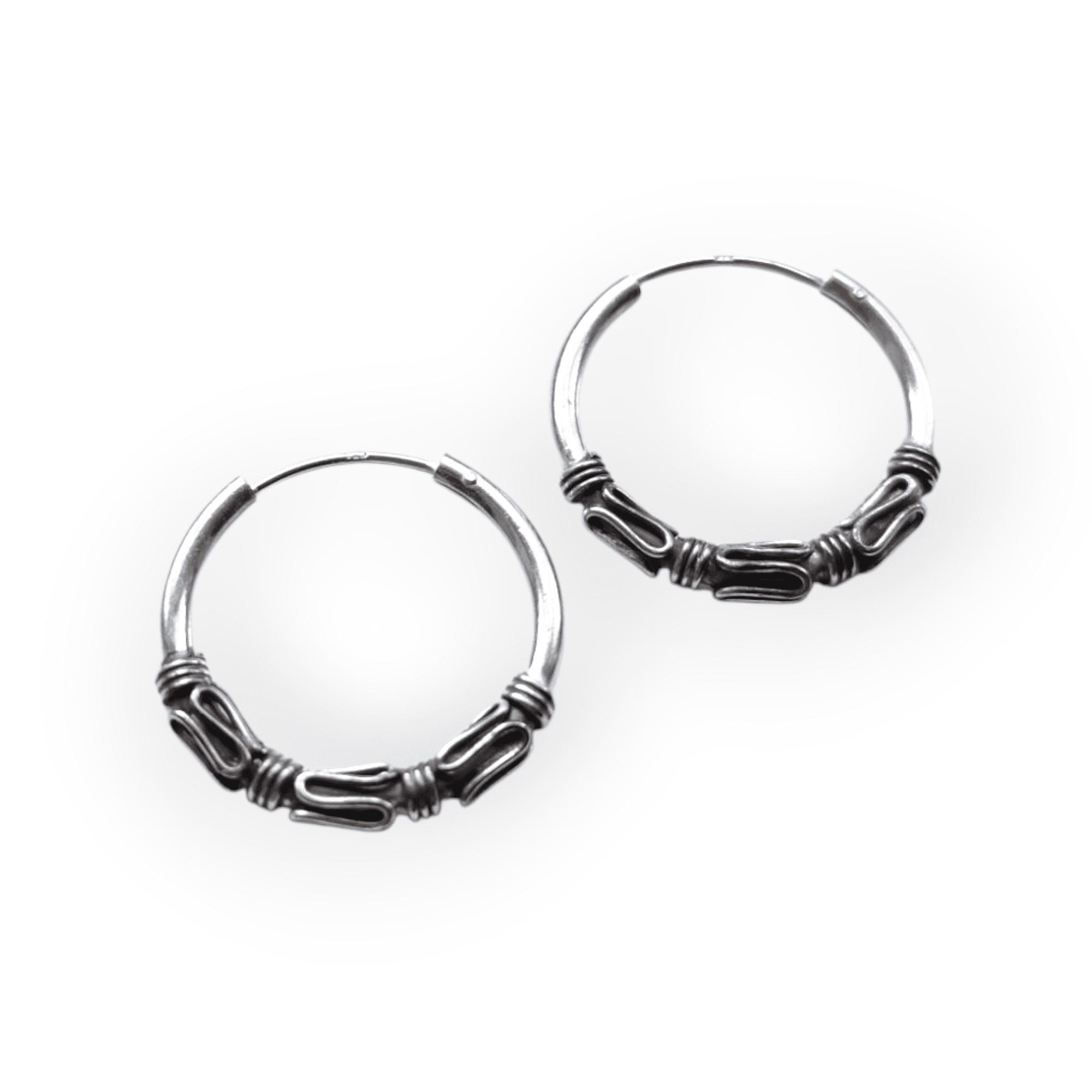 Crafted from Sterling silver, these oxidised hoop earrings are the perfect accessory for any occasion. The intricate Bali design adds a touch of delicacy, while the oxidised finish gives them a timeless look. Make a statement with these sophisticated and versatile earrings.