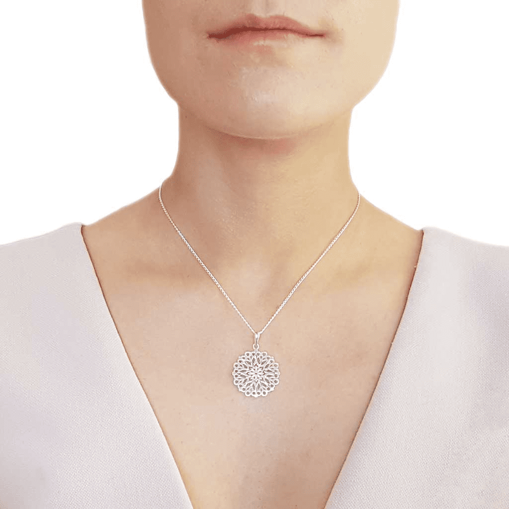 Elaborately patterned, this to-die-for abstract round pendant makes a stunning centrepiece for an evening gown, or can simply be worn to add a little grandeur to the everyday.