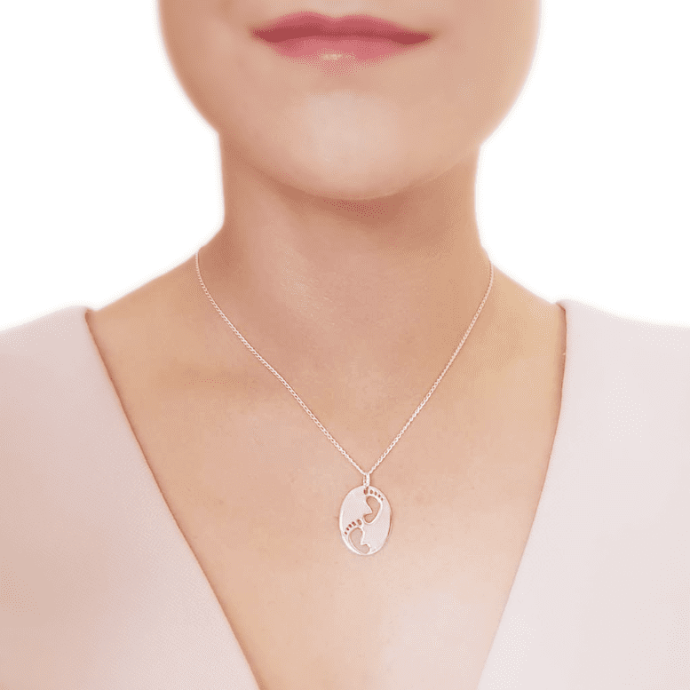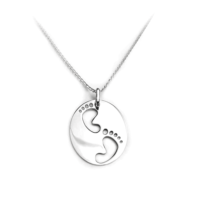Lovely and heart-warming, this Sterling silver baby footprint pendant depicts two footprints side by side.