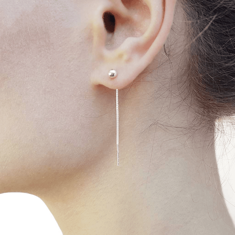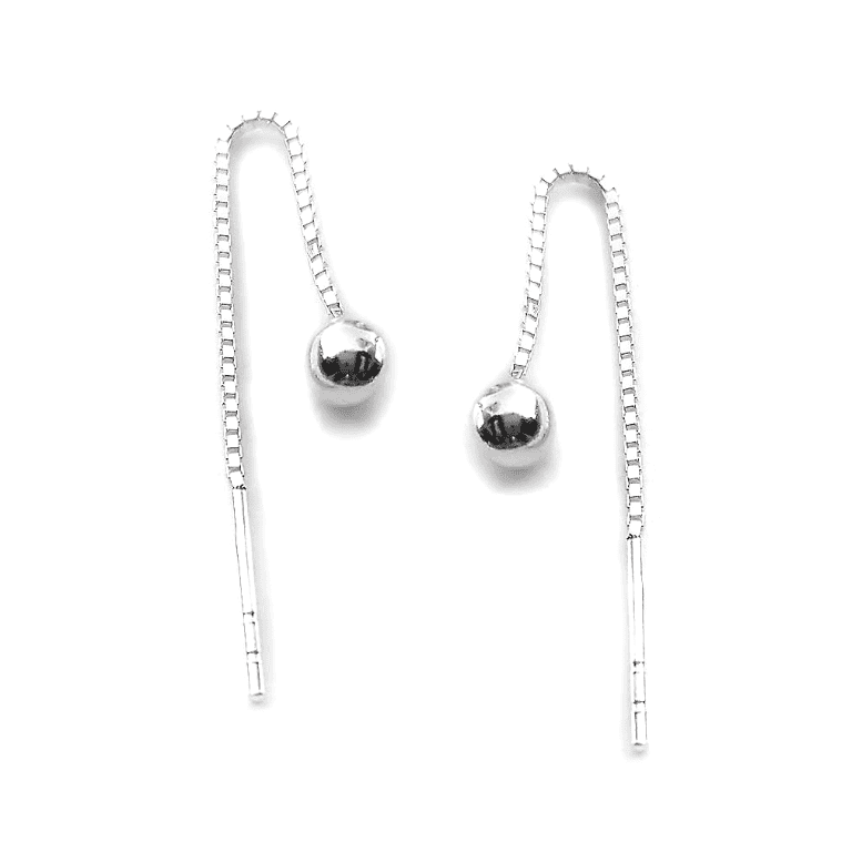 The height of sophistication... Delicate silver chains finished with flawless, Sterling silver beads, these pull through earrings are sure to shine.