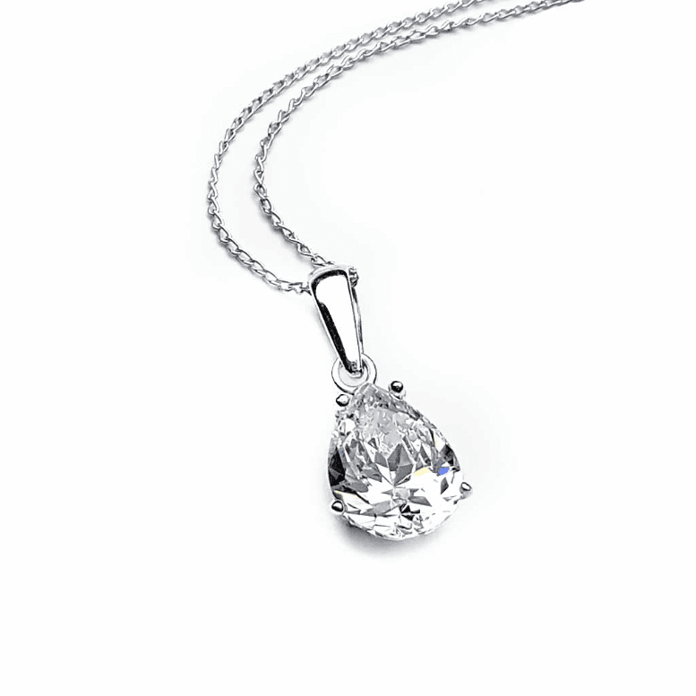 Mounted on a hidden silver frame, this teardrop CZ (Cubic Zirconia) catches and refracts the light no less than a diamond. Its elegant simplicity makes it perfect for special occasions.