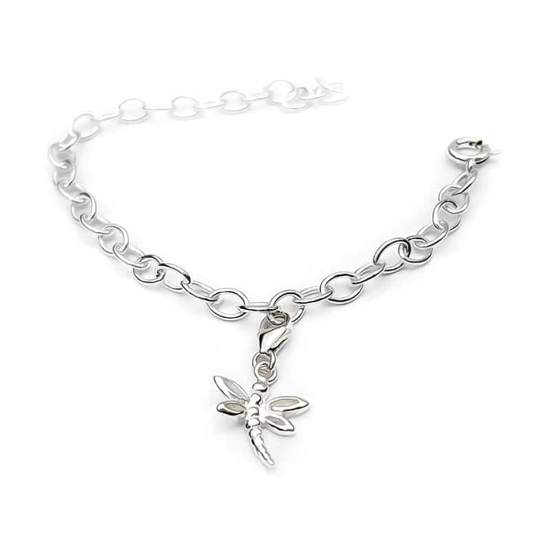 Bring a taste of spring to your look with this delicately wrought silver dragonfly charm. Available with a clasp for easy clip on to your bracelet.