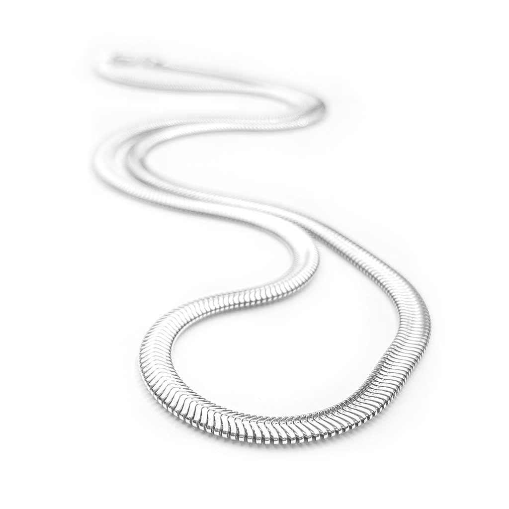 Crafted from high-quality 925 Sterling silver, the chain features a smooth, flat design that lies beautifully against the skin, creating a polished and refined look. Its fluid, flexible structure gives it a distinctive “snake-like” appearance, reflecting light subtly for a soft, luxurious shine.