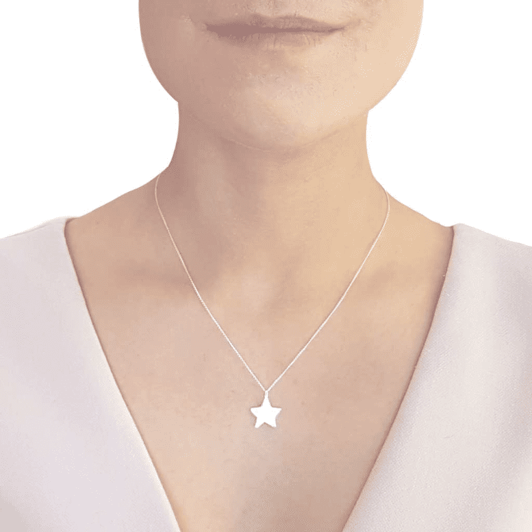 Simply heavenly... This delicate flat star pendant, suspended on a fine silver chain, will lend any look a starry shine.