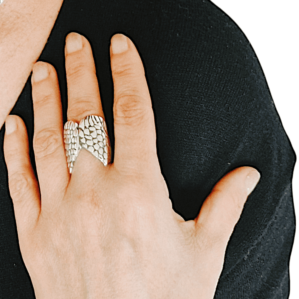 The Wing Ring is the most outstanding piece from the Designer Jewellery Limited Edition at House of Silver. Hand crafted in Sterling silver it is a unique design alluring to freedom and high aspirations.